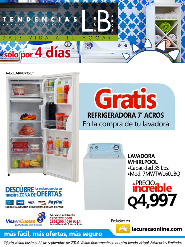 ˇGRATIS! en la compra de Lavadora, llévate tu Refrigeradora, Solo por 4 Días.
